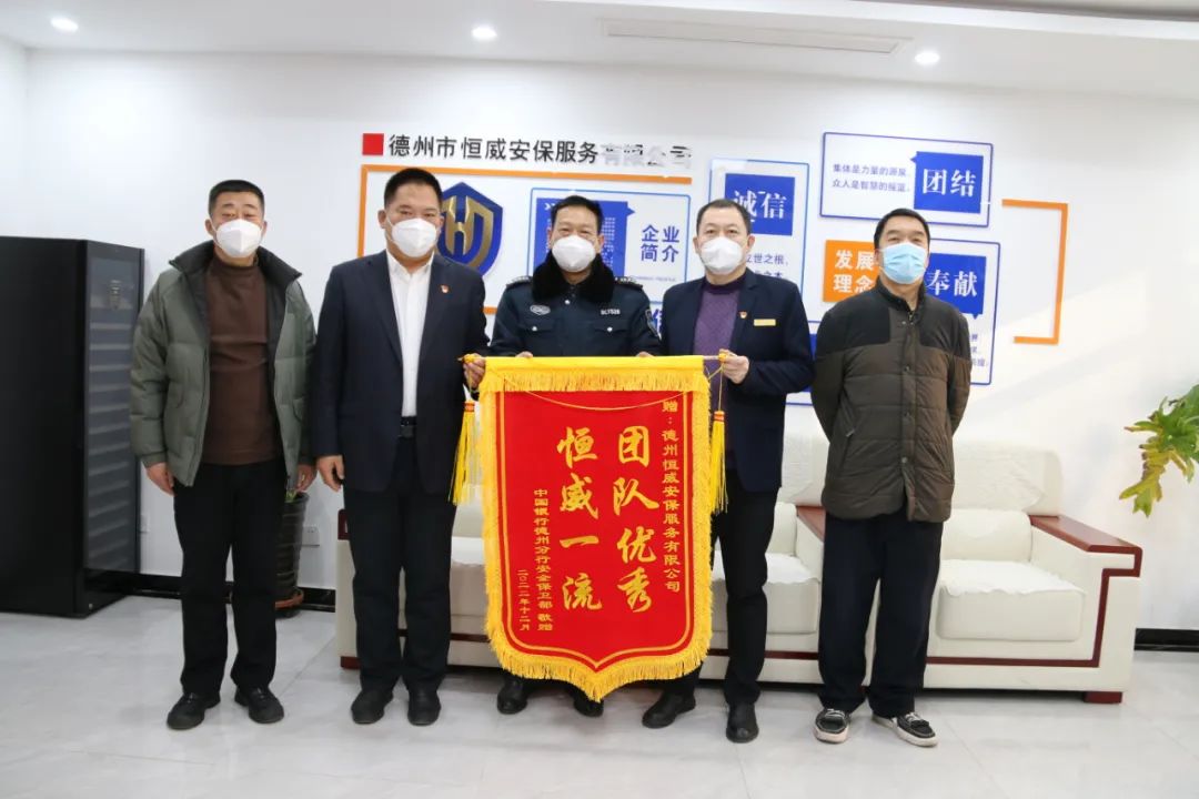 將寫有“團隊優(yōu)良 恒威一流”“認(rèn)真負(fù)責(zé) 貼心安?!钡腻\旗交予恒威安保手中,感謝恒威安保人在工作中履職盡責(zé)、踏實勤懇、真誠細(xì)心,特別是疫情防控期間,不畏時艱、任勞任怨堅守工作崗位,為公司有序、健康、穩(wěn)定運轉(zhuǎn)貢獻了堅實力量。