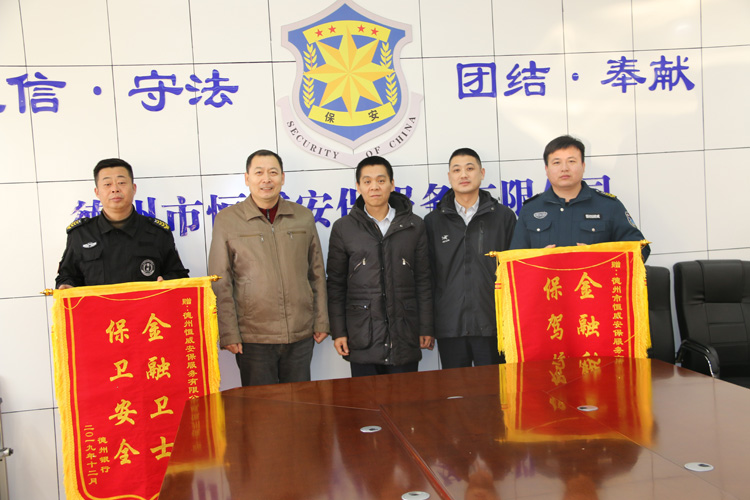 德州銀行領(lǐng)導(dǎo)蒞臨德州市恒威安保服務(wù)有限公司 商洽工作并贈送“金融衛(wèi)士、保衛(wèi)安全”錦旗
